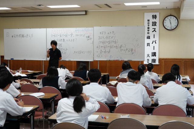 特設スーパー講座[数学](高2) HOME > ニュース > 高校 > 特設スーパー講座[数学](高2) 特設スーパー講座[数学] 令和6年9月28日(土)、高校2年生を対象に特設スーパー講座[数学]を実施しました。講師:駿河台予備学校 蔵貫 大 先生