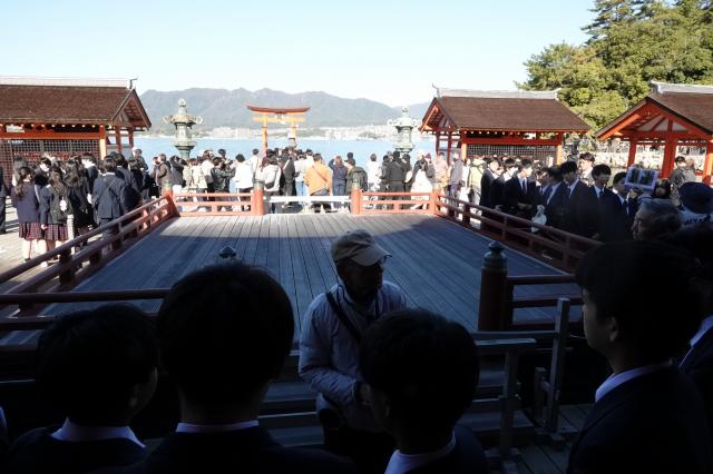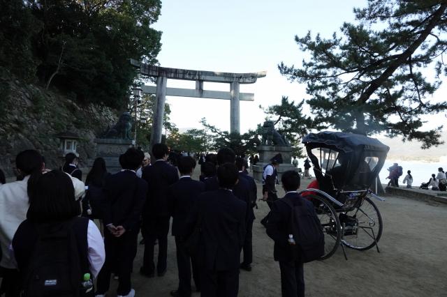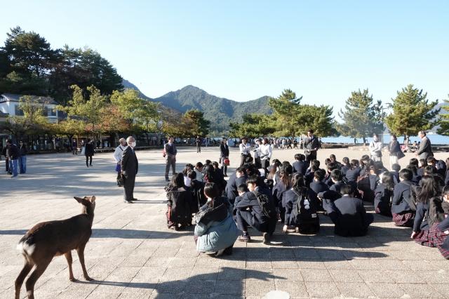 広島研修旅行[2日目](中2) HOME > ニュース > 中学校 > 広島研修旅行[2日目](中2) 広島研修旅行(中2) 令和7年11月22日(土)[2日目] 厳島神社見学 宮島班別研修 2日目の様子 ホテルの窓から 宮島口フェリー乗り場 フェリーから 宮島 フェリー前広場 世界遺産 厳島神社 厳島神社へ向かう 神烏 参拝入口 大鳥居を望む 卒塔婆石 拝殿を背に 舞楽について 反橋 豊国神社(千畳閣) 豊国神社(千畳閣)